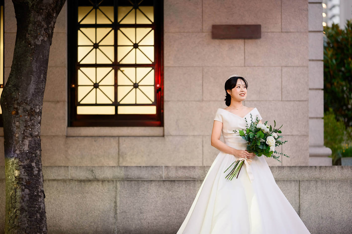 撮影日: 2025年 11月11日 ロケーション:神戸旧居留地・ハーバーランド フォトグラファー:五島 翔太 ドレス:SAREH NOURI(サラ・ノーリ) / EUGENIE →京都フォトギャラリーはこちら