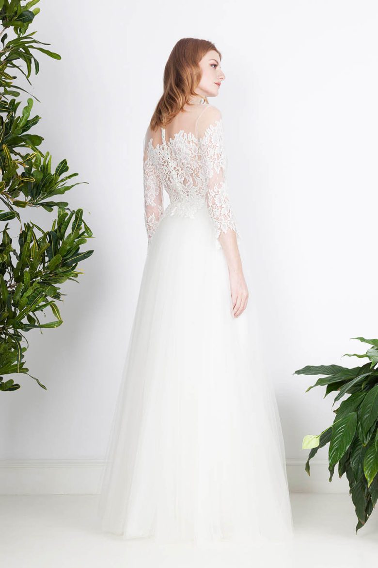繊細なイリュージョンレースが印象的なデコルテ。