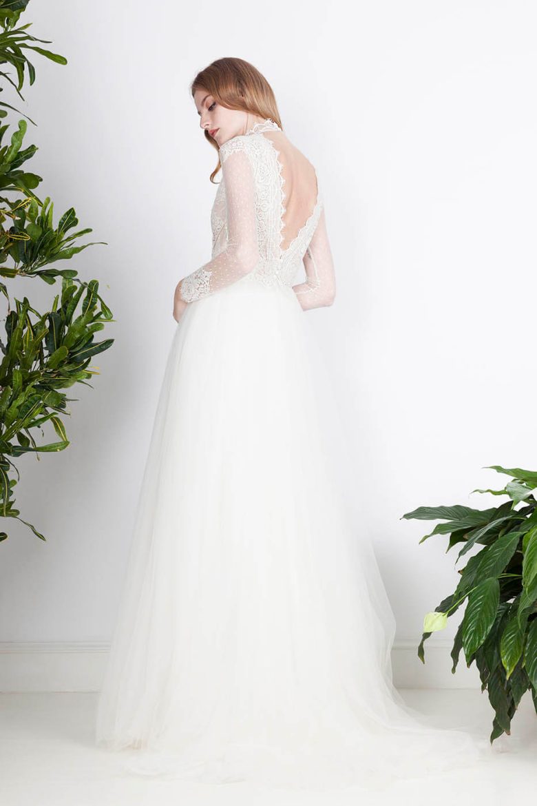 ドットチュールと繊細なレースはブランドを象徴するデザイン。