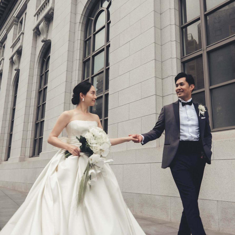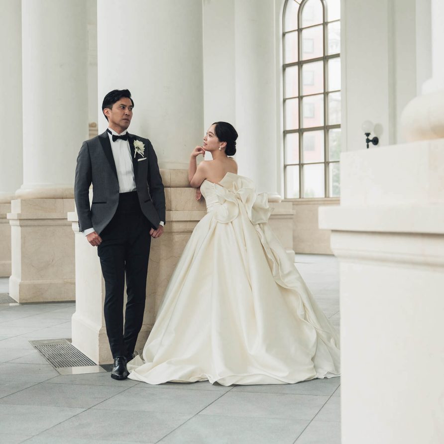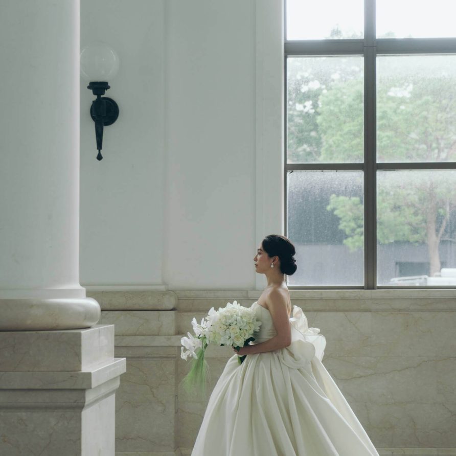 撮影スポットは、銀行建築ならではの重厚感と歴史を感じる外観、開放感のある天井が印象的な白を基調とした明るい吹き抜け空間など。併設されたギャラリーやカフェ、フラワーショップを活かした撮影も可能。